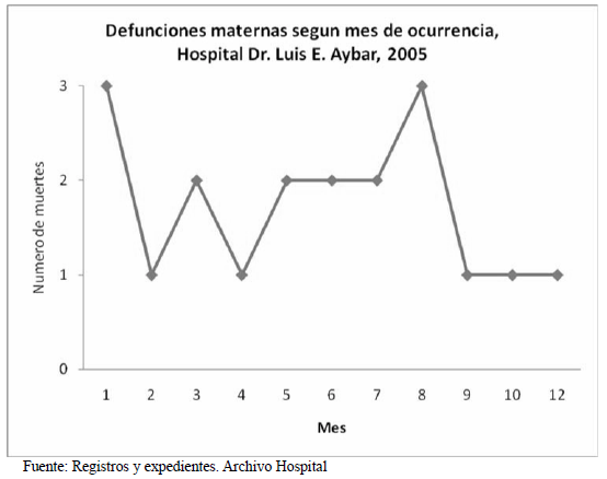 Las muertes maternas ocurrieron con mayor frecuencia en los meses de enero y agosto, ver grafico 1.