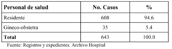 Dentro de las variables de la atención, se observa que la mayoría de los partos en las pacientes con complicación fueron atendidos por personal en formación como son los residentes. Esta situación, sugiere que la atención del parto y del recién nacido está delegada al personal en formación y que las funciones delegadas no se supervisan sistemáticamente, dando como consecuencia una atención médica inapropiada.