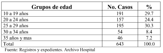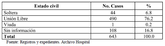 En lo que se refiere a las características sociodemográficas, una de cada tres pacientes con complicaciones obstétricas tiene menos de 20 años de edad. Más del 60% de las mujeres se ubican dentro del grupo de edad de 20 a 34 años, más del 70% tenían pareja y un porcentaje alto (>70%) tenían una escolaridad de secundaria o menos. Su ocupación principal eran las labores domésticas.