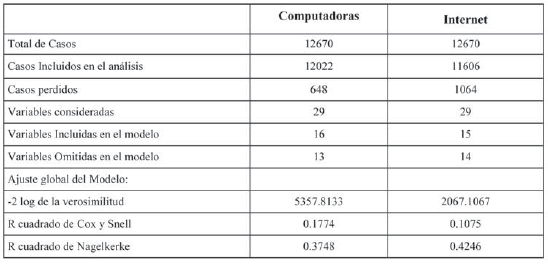 Ajuste de los modelos de regresión para explicar la utilización de computadoras e Internet por parte de los individuos