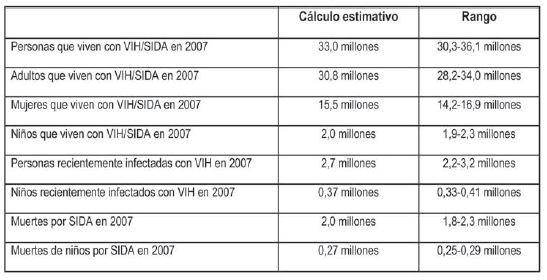 El Programa Conjunto de las Naciones Unidas para el SIDA (ONUSIDA), resume los principales datos epidemiológicos de esta manera8: