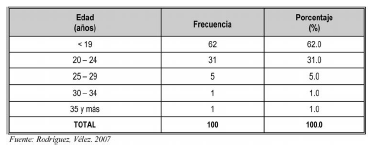 La tabla No. 1 revela que el 62% de los estudiantes tenían menos de 19 años; un 31% estaban comprendidos entre los 20‐24 años de edad; el 5% entre los 25‐29 años: el 1% de 30‐34 años y el 1% por encima de los 35 años.