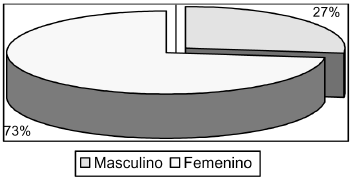 La distribución por sexo estuvo dada por un 73% de los estudiantes que corresponden al sexo femenino, mientras que el 27% son de sexo masculino, como lo muestra a continuación la gráfica No. 1.