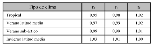 Uno de los principales propósitos de este trabajo consistió en determinar los parámetros de Hottel más apropiados para esta zona.