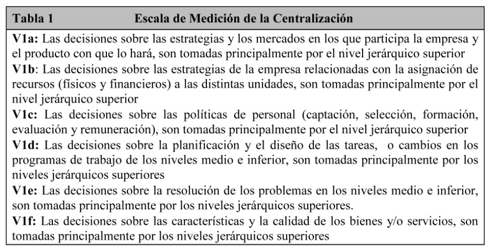 La variable centralización, ha sido explicada y utilizada casi desde el mismo momento que el mundo académico comenzó a escribir sobre las organizaciones. Es así como se entiende que ha tenido una repercusión muy significativa, puesto que en buena medida está vinculada con el establecimiento y definición de la estrategia empresarial, los mecanismos de coordinación y control, el diseño del sistema de jerarquía-autoridad-subordinación, y en general con el desarrollo de la estructura organizativa (Mintzberg , 1979; Cummings, 1995; Hodge et al., 2000; Claver et al., 2003; Moreno-Luzón et al., 2001; Robbins, 2005). Por ello, ha sido incorporada en la literatura de la teoría de la organización en numerosos modelos de dimensiones estructurales. Asimismo, la literatura especializada le ha otorgado un sitial muy importante cuando se trata de explicar la forma de organización que adoptan las empresas: orgánica o burocrática1.