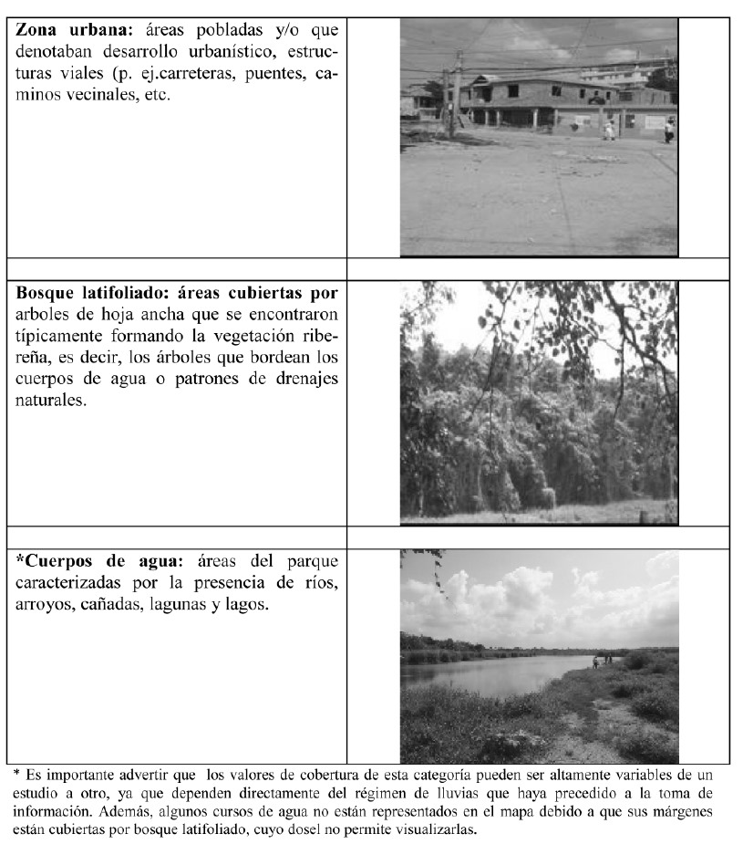 Las categorías de uso de la tierra que se asignaron a los polígonos digitalizados siguen el sistema de clasificación de uso y cobertura de la tierra empleado por el Servicio Geológico de los Estados Unidos (Anderson et al 1976) debido a su amplia aplicación en todo el mundo, aunque no todas categorías eran aplicables en este caso. Además, es un sistema cuyas categorías están dispuestas jerárquicamente, lo cual permite una fácil comparación con estudios elaborados a distintos niveles de la jerarquía así como de uso de la tierra más detallados. Además, fue un sistema adecuado para comparar con el último estudio para el país publicado sobre vegetación y cobertura de la tierra, de Tolentino y colaboradores (Tolentino et al 1998), el cual posee más detalles en base a la estructura o fisionomía de la vegetación.