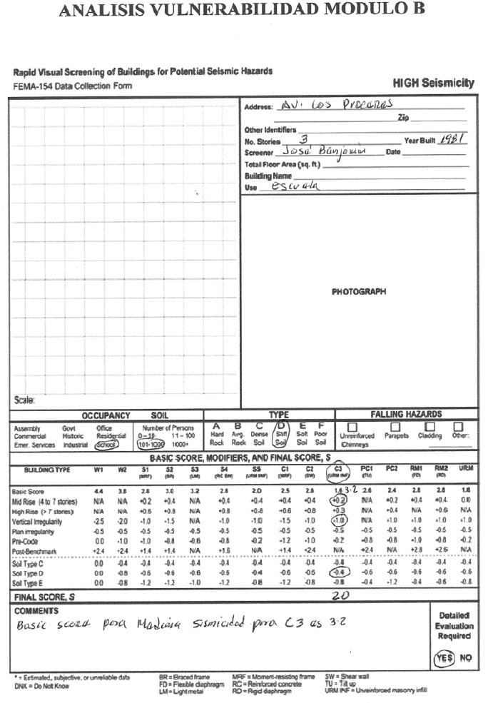 Ambos módulos en el análisis de la vulnerabilidad, arrojaron valores de s=1.5 para el Módulo A y de s=2 para el Módulo B, por tanto hay que intervenir en dicha edificación.