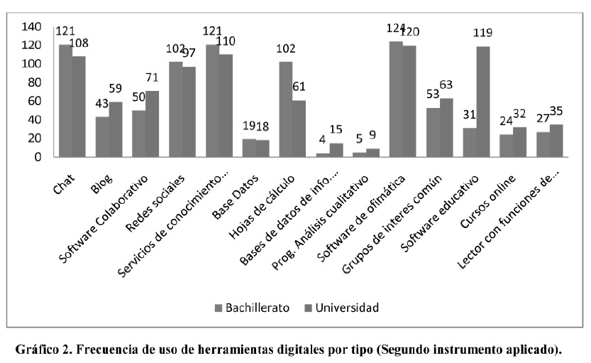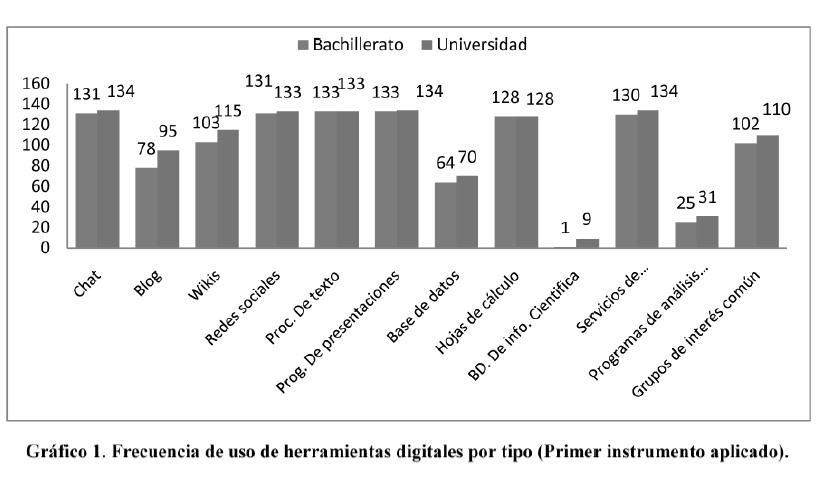 Un ejemplo de el poco énfasis puesto en dotar al estudiante universitario con estas herramientas digitales lo obtuvimos en una investigación con estudiantes de nuestra universidad, quienes al ser consultados acerca de cuantas nuevas tecnologías digitales habían tenido que dominar en su primer trimestre (ver gráfica