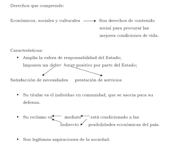 Los derechos de la segunda generación comprenden los derechos económicos, sociales y culturales, como se describen en la figura 1; Aguilar los enuncia así: