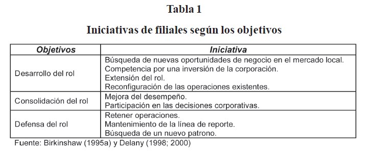 Como consecuencia de ello, en el ámbito de las empresas multinacionales, la iniciativa de una filial puede ser vista como un emprendimiento discreto y proactivo que avanza hacia una nueva forma de usar o expandir los recursos de una corporación y cuando es desarrollada por los directivos o gerentes de una filial exterior puede conducir a un cambio en el rol y la responsabilidad que tiene la filial dentro de la multinacional (Birkinshaw, 1997).