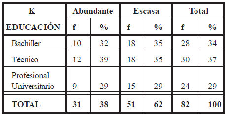 En la investigación, la variable independiente fue la respuesta de movimiento humano. Se obtuvo el número de respuestas kinestésicas correspondiente a cada sujeto de la muestra; y se utilizó una escala ordinal con rangos de 0 a 5. Luego, con los puntajes de esta escala, y a partir de la mediana (1), se dicotomizó la variable y se dividieron los sujetos en dos grupos. Aquellos que estaban por encima de la mediana conformaron el grupo de alta K; y los que estaban en la mediana, o por debajo de ella, conformaron el grupo de baja K.