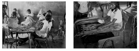 Culminada la fase de selección y secado de la bora, se procedió al registro de los participantes (Fotografías 5, 6 y 7), siendo el 100% mujeres, se registraron 20 mujeres jefes de hogar. El método empleado por el capacitador warao fue aprender haciendo, método que resultó efectivo ya que el 100% de las participantes aprendieron la técnica del tejido con bora, elaborando diversos productos artesanales (Fotografías 8, 9, 10, 11, 12, 13, 14, 15 y 16).