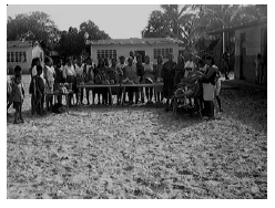 Esta comunidad fue escogida por su grado de marginalización y pobreza y por encontrarse relativamente cerca de la capital del estado, lo que facilito la movilización en términos logísticos. La anfitriona en la comunidad fue una indígena warao de nombre Nora Cova, que en el primer día nos llevo al lugar donde inicio la capacitación (Fotografía 1).