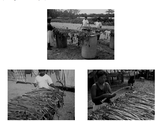 Fotografía 2, 3 y 4. Proceso de selección y secado de la bora. Fotografías: Diosey Lugo-Morin