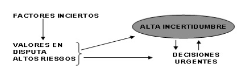 Gráfico N.° 4 - Representación de la Ciencia postnormal (Fuente: López y Luján, 2001: 103)