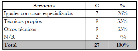 Muy pocas empresas poseen técnicos especializados en fabricación de muebles en su nómina. Sin embargo estos técnicos tampoco son abundantes en el mercado, observándose incluso deficiencias en las máquinas de primera y segunda generación (fases I y II). Esta situación constituye en sí misma una razón adicional del por qué las empresas no invierten en tecnología: el miedo a no contar con especialistas que puedan prestar servicios adecuados a las maquinarias. No obstante la formación de técnicos y operarios calificados durante décadas, los recursos humanos han emigrado a otros sectores industriales y de servicios. No existe una relación armónica entre la oferta y la demanda de recursos humanos de las empresas. Esto es especialmente importante en términos del mantenimiento de las maquinarias y de la oferta de servicios profesionales especializados.