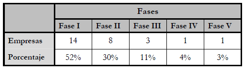 Para establecer una clasificación que permita visualizar el nivel tecnológico de la industria, se ha procedido a organizar estas en base a la clasificación establecida por Climent y Lecuona. Para clasificar las industrias correspondientes a cada fase, se ha tomado en cuenta que la empresa haya adquirido al menos un equipo con las características expuestas, independientemente del resto del equipamiento existente en la empresa.