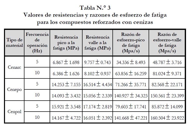 3.3 RESISTENCIA A LA FATIGA DE LOS COMPUESTOS DE CENIZAS