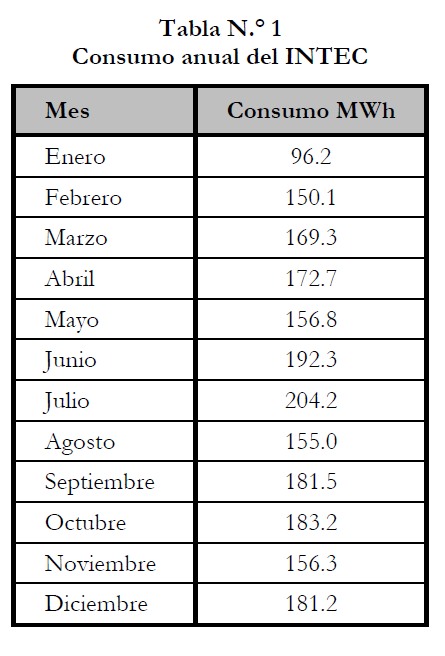 El consumo anual del INTEC es de 1,998 MWh al año.