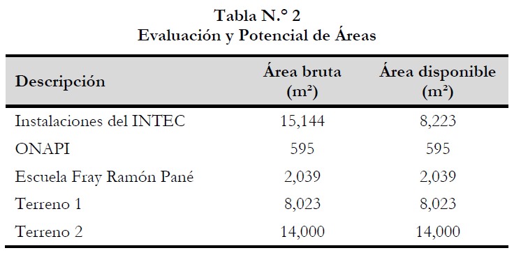 Por lo que puede apreciarse en la tabla N.° 3, las únicas áreas afectadas son las del INTEC. Esto quiere decir que no se dispondrá del área total medida. Las instalaciones restantes pueden utilizarse en su totalidad.
