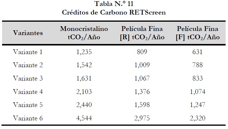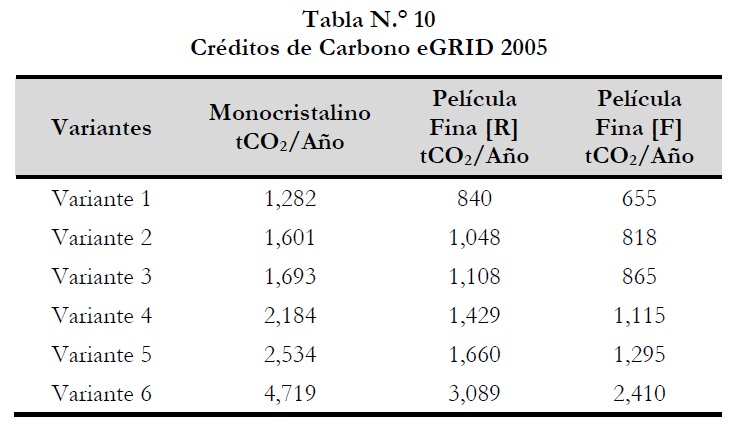 La determinación de la magnitud de los créditos de carbono con los cuales contaría INTEC para insertarse en el mecanismo de desarrollo limpio, sirve para cuantificar la cantidad de toneladas de CO2 que se pueden dejar de emitir con el uso de la tecnología fotovoltaica. Para ello se calculó la cantidad de MWh que podrían ser generados de acuerdo con la capacidad del sistema fotovoltaico propuesto y así evitar el consumo de su equivalente proveniente de combustibles fósiles.