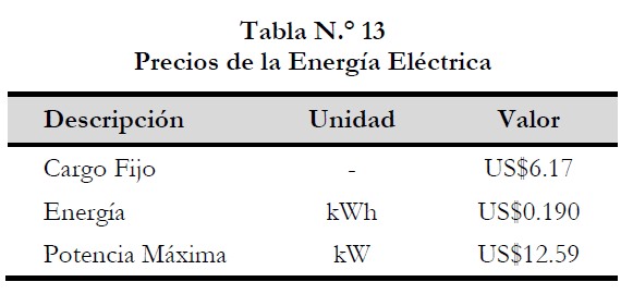 En la tabla N.° 15 se resumen los datos de entrada considerados para el análisis de factibilidad de la variante planteada: