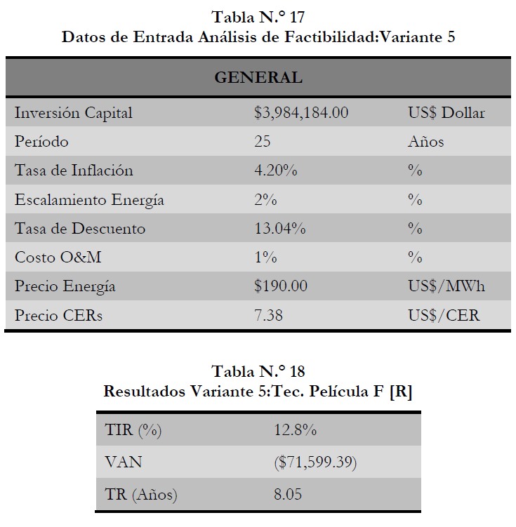 En la tabla N.° 17 se resumen los datos de entrada considerados para el análisis de factibilidad de la variante planteada: