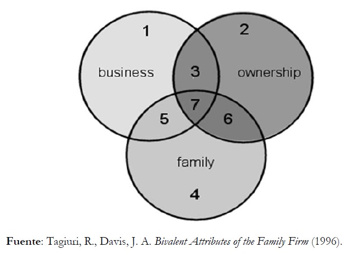 Renato Tagiuri y John A. Davis desarrollaron, en su ensayo de 1982 titulado “Bivalent Attributes of the Family Firm”10, el modelo de los tres círculos, según el cual las empresas familiares como un sistema complejo constituido por tres subsistemas interdependientes: la familia, la gerencia y la propiedad.
