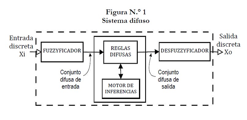 La fuzificación es la primera fase donde se establece una función desde a todos los conjuntos borrosos en . En otras palabras, a un número real se le asigna un grado de pertenencia a un conjunto borroso . Luego están las reglas difusas que es una colección de reglas que describe la relación entre las acciones y los estados del sistema. Las reglas están expresadas en la forma si son las acciones y los estados del sistema respectivamente para . En tercer lugar está la inferencia que es una regla de deducción para determinar una salida difusa basada en un conjunto arbitrario en , y por último, la idesfuzificación que es un operador que transforma conjuntos borrosos a números reales. Existen varios métodos de desfuzificación siendo uno de los más utilizados el centro de gravedad.