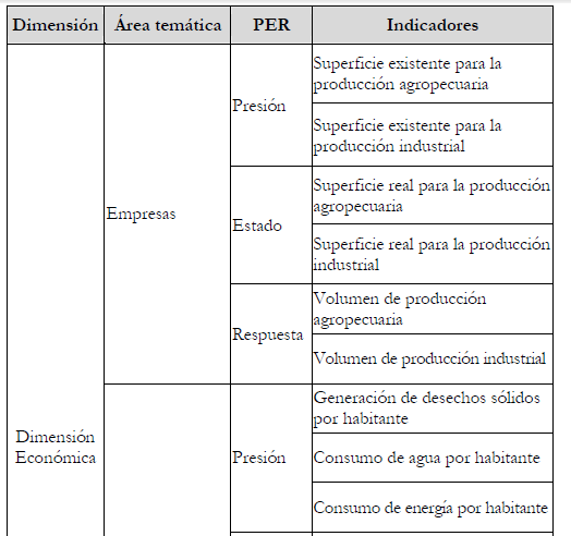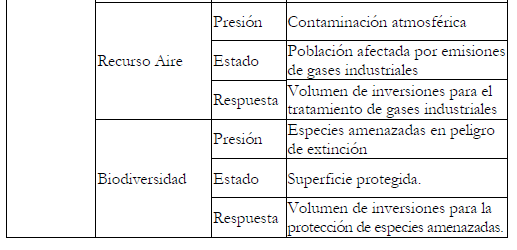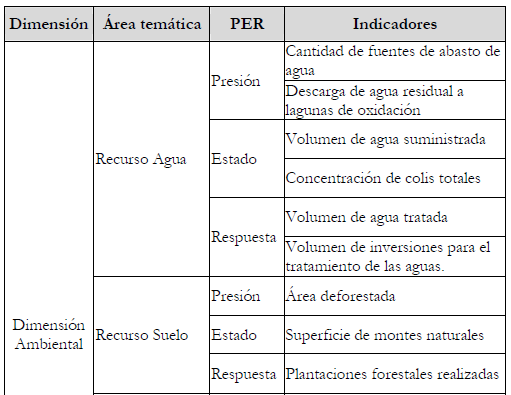 La metodología PER identifica tres tipos de indicadores ambientales: