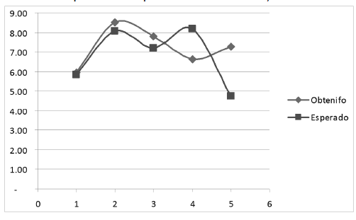 Cada puntaje de las dimensiones del autoconcepto tiene un promedio normal esperado para mujeres adultas. En este sentido, las mujeres con VIH puntuaron ligeramente por encima de la media en las dimensiones académico-laboral, con una media de M = 8.50 con respecto a la media esperada (M = 8.06), en la emocional, con una media de M = 5.95 en relación a la media esperada (M = 5.85), y la dimensión social, con una media de M = 7.81, con respecto a la media esperada (M = 7.20). Las dimensiones donde hubo diferencias significativas fueron: autoconcepto familiar con una media de M = 6.64, muy por debajo de lo esperado (M = 8.17), y autoconcepto físico con una media de M = 7.26, muy por encima de la media esperada (M = 4.73) (Ver gráfico N.º 3).