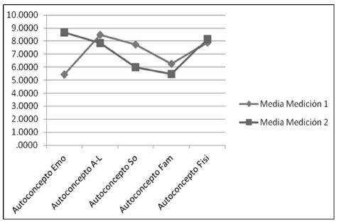 De todas las dimensiones del autoconcepto, que incluyen académicolaboral, emocional, familiar, social y físico, las que puntuaron significativamente por encima y por debajo de la media fueron el autoconcepto físico y el autoconcepto familiar, respectivamente.