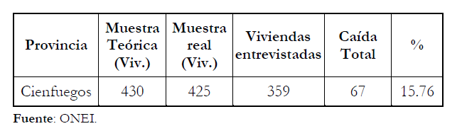 Nota: (*) El porciento de caída de muestra fue calculado, dividiendo para cada provincia la caída de viviendas por su total de viviendas a entrevistar o muestra real.