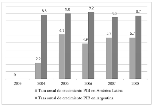 Tasa anual de crecimiento del PIB de América Latina y de Argentina CEPAL (2009)