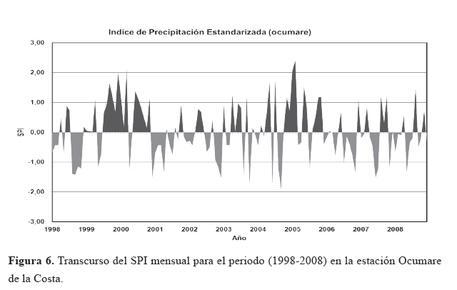 Los resultados anteriormente discutidos evidenciaron que en algunas estaciones bajo estudio se han presentado ciertos eventos de magnitud extremadamente fuertes; sin embargo, estos episodios han sido localizados. En la tabla 6 se presentan las siete magnitudes máximas de las sequías detectadas en la zona de estudio, para el grupo de estaciones de estudio.