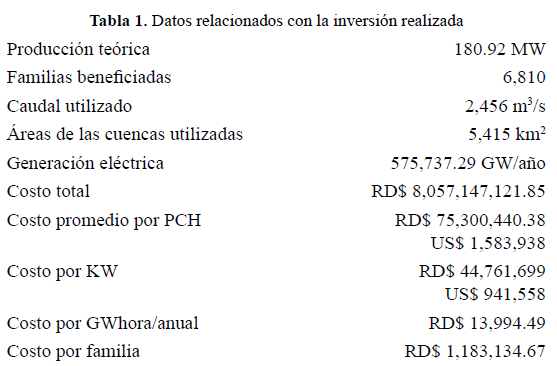 La República Dominicana está considerada como un país con gran potencial hidroeléctrico, con un índice de precipitaciones promedio que oscila entre 1400 y 1800 mm, lo que indica un alto contenido de recursos hídricos en la zona que, combinado con la orografía, da paso a un buen aprovechamiento de las masas de agua y su potencial hidráulico presenta posibilidades de aprovechamiento de pequeños saltos hidráulicos para generar electricidad (Gobierno Dominicano, 2015). Esta producción de energía eléctrica en las zonas de montaña, aisladas de las redes existentes, puede reducir costos de expansión de estas, a la vez que lleva esta preciada energía a sitios remotos.