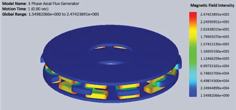 El voltaje de fase deseado es de 14.5 V CA, y para un voltaje de carga de la batería es de 12 V. El valor del campo magnético coercitivo máximo del generador (B) es 0,607 T.