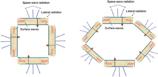 The prevalence of specific coupling mechanisms, such as surface wave coupling or other types, depends on various factors such as the thickness of the substrate material, the characteristics of the ground plane, and the excited modes of the patch antenna. In certain scenarios, one coupling mechanism may outweigh the others. Notably, surface wave coupling tends to dominate when patch antennas are fabricated on high permittivity dielectric substrates and becomes even more pronounced as the substrate thickness increases.