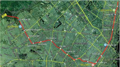 The Bogota Metro First Line (PLMB) consists of an elevated metro, of automatic drive, whose main objective is to meet the growing demand for the city. PLMB is developed in phases. The first phase counts 16 stations and approximately 23 km in length. The project crosses 9 towns, within which to relocate the stations, 10 of them integrated with the transmilenio system. Figure 1 illustrates the route of Bogota Metro First Line, together with the stations.