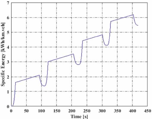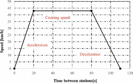 It was found that higher cruising speeds would imply less travel time, but at the cost of increasing specific consumption. Consumption depends on the speed profiles and consequently on the operation of the system.