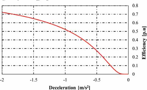 The scenarios proposed allow us to identify a margin to achieve greater efficiencies in the energy return process. The average deceleration in scenario 2, higher cruising speed, turned out to be -0.9 m/s2, which could go as low as -1.5 m/s2 where there would be a coefficient in energy return of around 0.65, but the aforementioned cost to some extent sacrificing the comfort of the passengers for this greater deceleration.