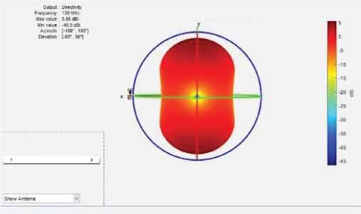 Before recovering the meteorological image that came encoded in APT format, the LabVIEW program was used to do bandpass filtering from 100 Hz to 4.16 KHz, centered approximately at 2.4 KHz. The goal was to remove the noise/interfering signals and recover the relevant information. Fig. 5 and Fig. 6 show some parameters of the designed antenna array: Gain of 5.56 dBi and beamwidth of 60°.