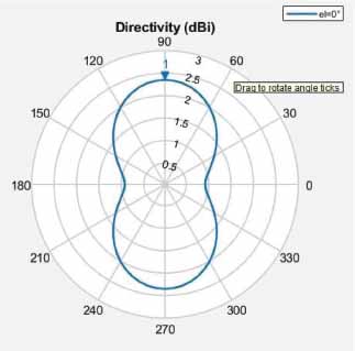 The L/2 length of the array elements contribute to the gain of the antenna array; however, the mutual impedance of 41 Ω and the separation angle of the array elements (120°) do not guarantee the reception of electromagnetic waves with pure circular polarization.