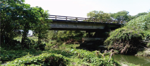 Las patologías sobresalientes presentes en los elementos constitutivos del puente fueron: acero de refuerzo expuesto en ciertos elementos, nidos de piedras y cavidades, pequeñas fisuras y agrietamiento en diafragmas y pilas. La aplicación de la metodología de evaluación LRFR del Manual de Evaluación para puentes, combinada con la adaptación de cargas de diseño del camión HS-MTOP, proporciona un amplio rango de seguridad, ya que su implementación considera sobrecargas mayores a las normales de diseño.