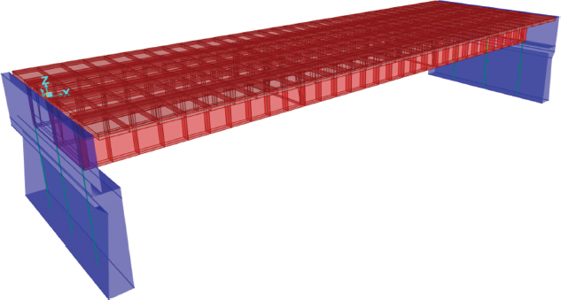 A continuación, se elabora un modelo estructural del puente en el software CSI Bridge, versión de prueba, (2024), para obtener de manera más específica los momentos flectores y fuerzas cortantes en cada uno de los puntos del puente, de esta manera, estos resultados se utilizan para obtener finalmente el factor de capacidad de carga RF y establecer la evaluación final según el Manual for Bridge Evaluation de la AASHTO. Entre los elementos estructurales revisados se tiene al tablero, las tres vigas longitudinales, los cuatro diafragmas y la losa en voladizo.